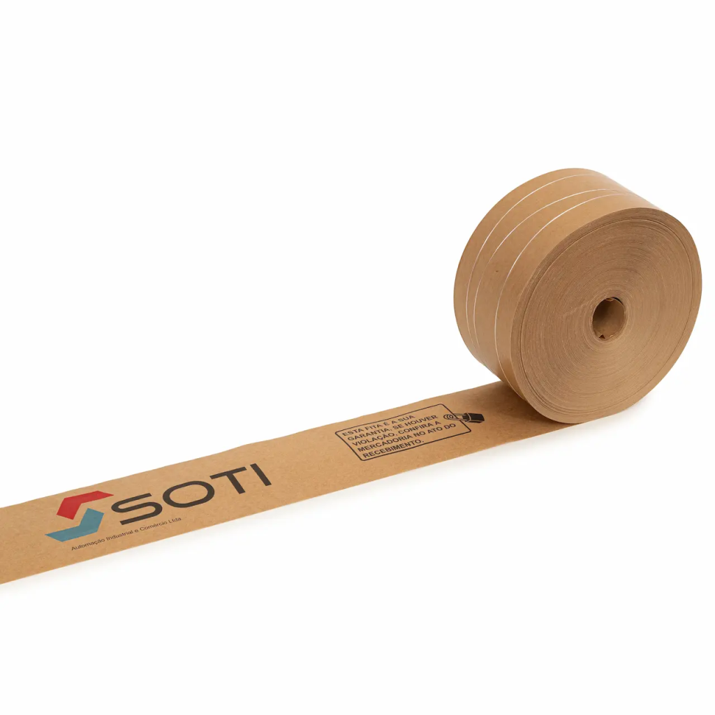 Fita gomada personalizada: permite imprimir logotipos, mensagens e instruções, agregando valor estético e segurança visual às embalagens.